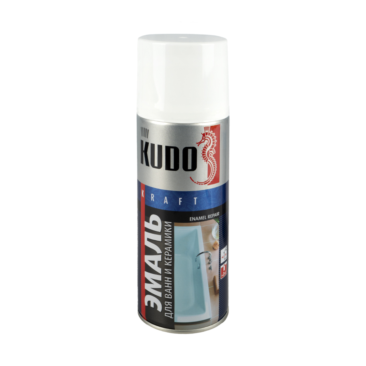 Эмаль аэрозольная для реставрации ванн и керамики Kudo KU-1301, 520 мл, белая