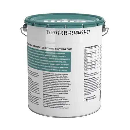 Назначение: Для подготовки плотных, гладких, слабо впитывающих и других оснований к нанесению различных отделочных материалов. Особенно рекомендуется для обработки бетонных поверхностей стен и потолков перед нанесением гипсовых и цементных штукатурок, плиточных клеев. Рекомендуется использовать перед укладкой новой керамической плитки на старую. Применяется для внутренних и наружных работ.