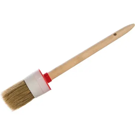 Высококачественный микс из синтетических фи- ламентов 2-х видов: PBT с расщепленным концом для равномерного распределения, PET с острым концом для максимального проникания ЛКМ и натуральнной щетины для лучшей вбираемости и отдачи ЛКМ. Идеально подходит для лессирующих антисептиков. Нержавеющий обжим. Пастиковая ручка. Эпоксидный клей для надежной фиксации микса филаментов и натуральной щетины.