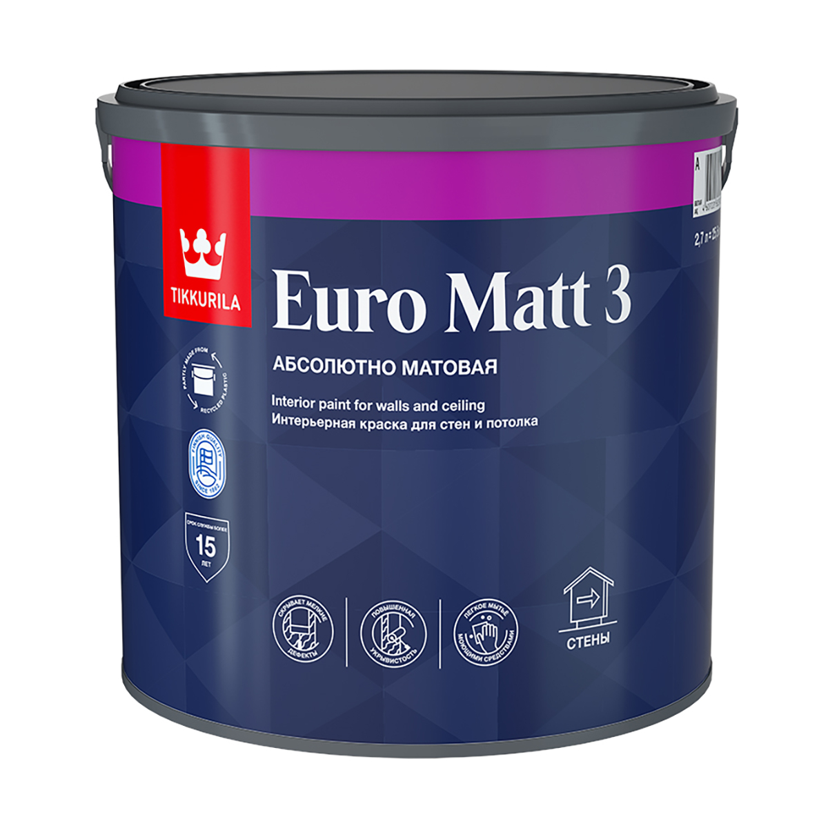 Краска интерьерная Euro Matt-3 (Евро-3) TIKKURILA 2,7 л белый (база А) 27520
