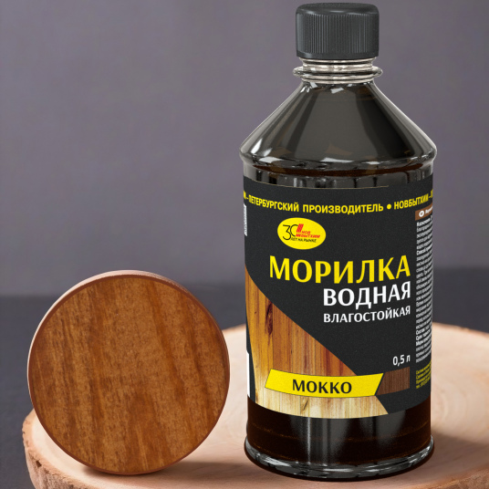 Морилка водная предназначена для тонирования и придания благородных оттенков деревянным изделиям, эксплуатирующимся внутри помещений. Может использоваться для наружных работ при условии последующего покрытия лаком. Морилка наносится на зашкуренную поверхность валиком, тампоном, кистью или распылителем в один или несколько слоeв до достижения требуемой интенсивности цвета. При наличии масляных пятен или древесной смолы поверхность необходимо зашкурить и обезжирить ацетоном, чтобы избежать неравномерного прокрашивания древесины. При многослойном нанесении время межслойной сушки 2 часа. Время полного высыхания 4 часа. Расход при нанесении кистью или валиком 100 мл/м2 при окрашивании в один слой. В случае замерзания морилку необходимо выдержать при комнатной температуре и тщательно перемешать или взболтать перед использованием. При необходимости разбавляется водой.