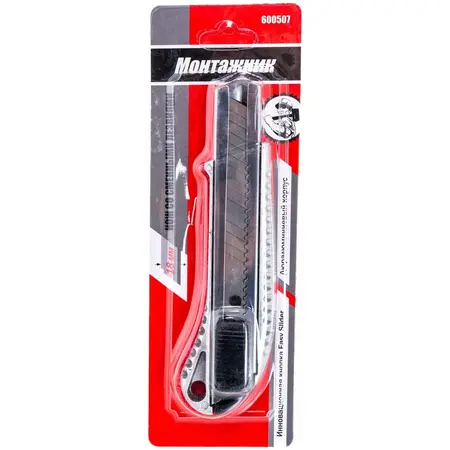 Нож со сменным лезвием 18мм, алюминиевый корпус, кнопка Easy Slider, "Монтажник"