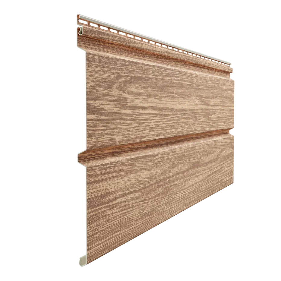 Сайдинг Дёке серии LUX под дерево сочетает в себе качество Дёке и великолепный внешний вид. В основу данной серии положены технологии глубокой офсетной печати по горячей поверхности винилового сайдинга. Текстурный рисунок создает имитацию натурального дерева, что делает сайдинг этой серии почти неотличимым от деревянного бревна или бруса.