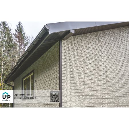Сайдинг Стоун-Хаус Сланец светло-серый. Размер 225х2000 мм,толщина 1,2мм. Квадратура одной планки 0,45м2. Площадь в упак. 6,75 м2. В упаковке 15 шт. Вес упак. 17 кг.