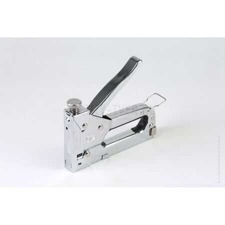 Мебельный степлер с усиленной пружиной предназначен для выполнения работ по обтяжке тканью мебели, а также креплению изолирующего материала, парниковой пленки и прочее. Используемый тип скоб №53 4-14мм. Незаменим при сборке мебели, укладке коврового покрытия, фиксации утеплителя а также при багетных работах.