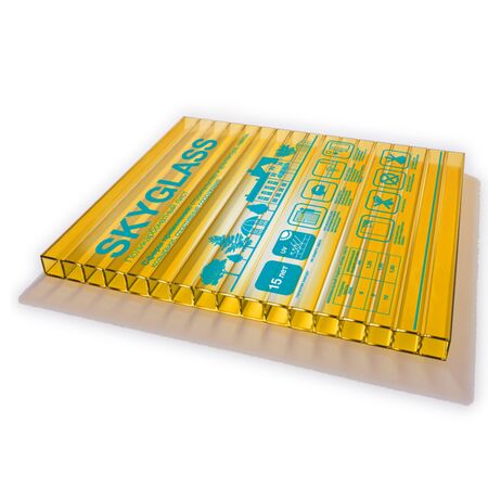 Сотовый поликарбонат SKYGLASS — представляет марку, отличающуюся оптимальным соотношением цены и качества, с защитой от UV-излучения 30 мкм.